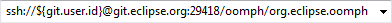 There are typically several different URIs for accessing the same underlying repository depending on whether one wants Gerrit access or direct Git access, and whether ones wants to use SSH, HTTPS, or anonymous access. In this case, Gerrit access via SSH is chosen. |