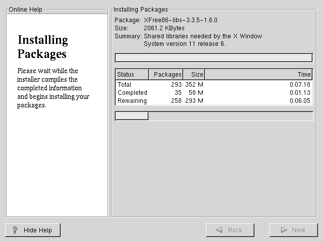 At this point there's nothing left for you to do until all the packages have been installed (see Figure 4-19). How quickly this happens depends on the number of packages you've selected, and your computer's speed.